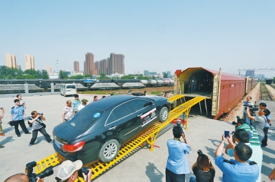 昨日14時,鄭州北站內(nèi),首次迎來一批特殊的貨品——私家車。各式各樣的小轎車、SUV被裝上火車,與它們的主人暫時分離,直奔目的地重慶。