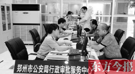 在鄭州市公安局行政審批服務(wù)中心,工作人員正在為辦事群眾辦理審批事項