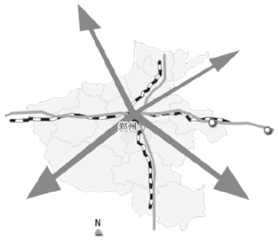 “米”字形快速鐵路網(wǎng),是國務院批復《中原經(jīng)濟區(qū)規(guī)劃》和《鄭州航空港經(jīng)濟綜合實驗區(qū)發(fā)展規(guī)劃》明確的重大工程,具體就是在京廣和徐蘭“十”字形快速客運通道基礎上,建設鄭州至萬州、鄭州至濟南、鄭州至合肥、鄭州至太原的高速鐵路。根據(jù)鄭州都市區(qū)整體規(guī)劃,未來將形成以鄭州為中心的“米”字形高鐵輻射網(wǎng)絡,實現(xiàn)北京、西安、武漢等30多個城市的“3小時經(jīng)濟圈”。