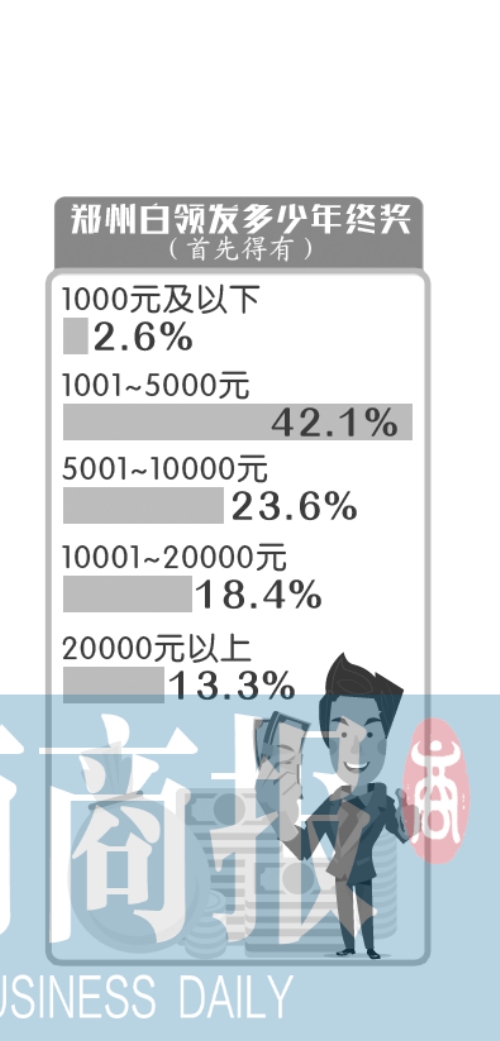 近日,智聯(lián)招聘網(wǎng)站發(fā)布調(diào)查顯示,參與調(diào)查的鄭州白領(lǐng)有超四成表示能拿到2016年年終獎,這其中近五成表示年終獎不足5000元,而孝敬長輩和還貸款是年終獎主要使用方式。