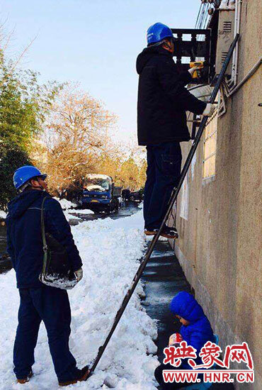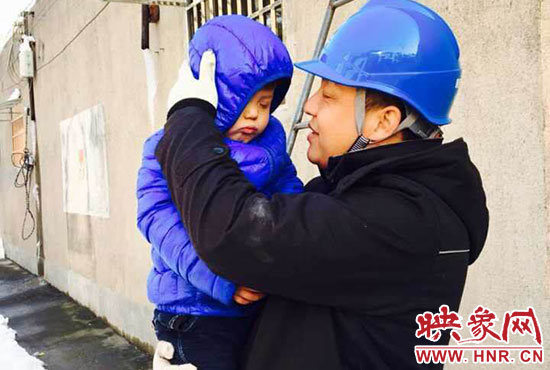 “你兒子睡著了,快下來吧。”11月23日,正在架電線的新密供電公司岳村供電所員工李磊聽到同事叫他。李磊的兒子叫李昕龍,今年5歲,由于李磊妻子不在家,幼兒園又因雪放假,沒人照看李昕龍,李磊只好帶著他去上班。正在安裝智能表的李磊,聽到同事叫他,趕緊朝下一看,兒子在冰天雪地里已經(jīng)睡著了。他急忙從梯子上下來,把孩子抱起來,由于剛睡著,孩子竟然沒有醒來,他只好繼續(xù)抱著孩子睡覺。