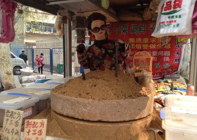 今天上午,在前進路伊河路口,一輛賣調(diào)味品的小貨車上,一身穿紅旗袍帶墨鏡的“妙齡女郎”動作嫻熟地推動石磨加工十三香。老板唐師傅笑著說自從裝上美女機器人幫忙推磨后,生意好了不少。