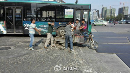 1、鄭州道路坑連坑沒人管 公交司機(jī)自力更生填坑鋪路