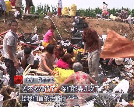 8月23日上午,辛先生駕駛的貨車在焦桐高速泌陽段發(fā)生傾翻,散落在地的20噸蘋果遭附近村民哄搶。辛先生本來以為老百姓是跑來幫忙的,沒想到一個接一個打電話,都是過來搶貨的。“差不多都行了,給我們留條活路行不行?”