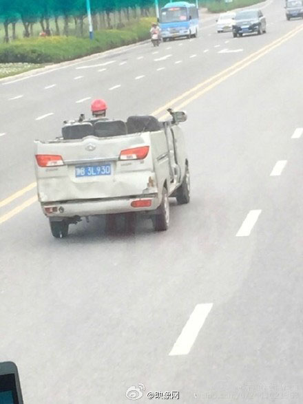 2、面包車改敞篷車 司機(jī)戴頭盔上路