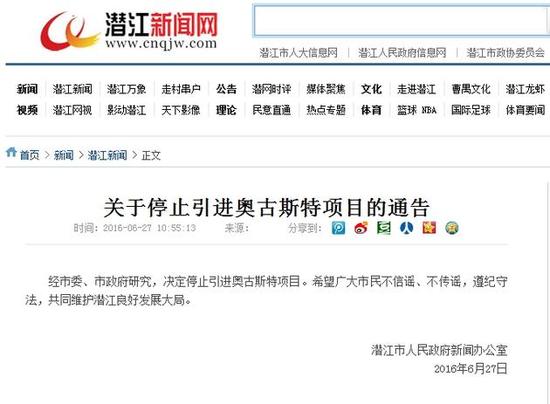 2016年6月27日上午,潛江市部分人員違反國家法律法規(guī),在未向有關(guān)部門提出申請并獲得許可的情況下,非法采取利用微信群傳播請?jiān)笗?,擅自上街游行,聚集請?jiān)傅确绞?,要求政府停止引進(jìn)奧古斯特項(xiàng)目,擾亂社會公共秩序,造成了很壞的社會影響。