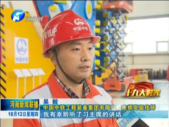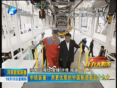 中國共產(chǎn)黨第十九次全國代表大會即將召開,今天起,河南新聞聯(lián)播推出《十九大時(shí)光》專欄,和您一起走進(jìn)革命老區(qū)、田間地頭、工礦企業(yè)、街道社區(qū),傾聽基層干部群眾愛黨愛國的熱切心聲,感受人們建設(shè)出彩中原的火熱場景,聚焦十九大召開的歷史性時(shí)刻,共度這段特殊而又美好的時(shí)光。今天播出第一集《中鐵裝備:用更優(yōu)質(zhì)的中國制造喜迎十九大》。