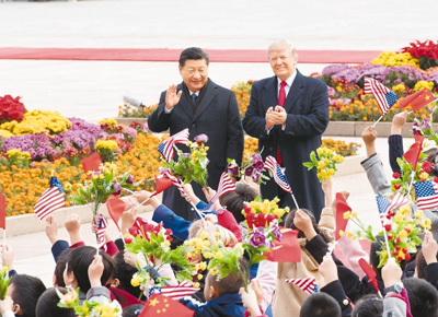11月9日,國家主席習(xí)近平在北京人民大會堂東門外廣場舉行歡迎儀式,歡迎美利堅合眾國總統(tǒng)唐納德·特朗普對中國進行國事訪問。