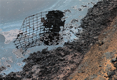 未經(jīng)處理的廢水排入后,經(jīng)過(guò)自然蒸發(fā)沉淀下來(lái)的黏稠物,這些物質(zhì)被用鏟車(chē)鏟出,直接埋在沙漠里面。