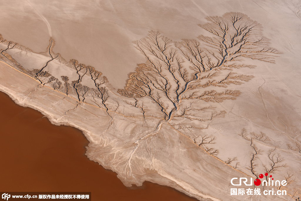 2015年6月5日消息,美國加州莫哈韋沙漠,這些照片看起來像是拍了森林中的一排樹,但事實上它們是干涸湖底的紋路。這種紋路足足綿延3英里。飛行教員Jassen Todorov在3000英尺的空中拍下了這組照片。圖片來源:CFP