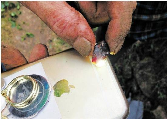 記者現(xiàn)場(chǎng)看到,挖出來(lái)的石頭,之所以被稱(chēng)作“紅寶石”,是因?yàn)槠浔砻婵慈ルm然灰暗無(wú)光,但在燈光照射下,會(huì)呈現(xiàn)暖暖的紅色,而且品質(zhì)越好,通透性越高,的確有些迷人。石頭到底是什么成份?怎么形成的?真的很值錢(qián)嗎?磐安縣國(guó)土部門(mén)已經(jīng)邀請(qǐng)了省里的專(zhuān)家今天到現(xiàn)場(chǎng)鑒定,記者屆時(shí)也將一同前往。