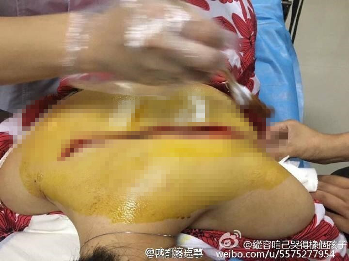 7月4日下午,有成都網(wǎng)友發(fā)微博稱,1日晚上9點(diǎn)過,她同朋友經(jīng)過成都龍泉驛區(qū)航天北路美食街時(shí),被一名騎自行車的陌生男子劃傷背部,傷口長度達(dá)32厘米,深度3公分左右。隨后,被人送往附近醫(yī)院治療。