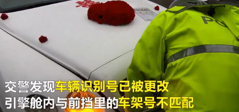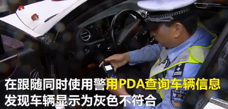 民警在跟隨過程中,使用警用PDA查詢車輛信息,發(fā)現(xiàn)登記車輛為灰色,明顯不是眼前的白色跑車,隨即將婚車車隊(duì)攔停后,詢問駕駛員車輛來源。