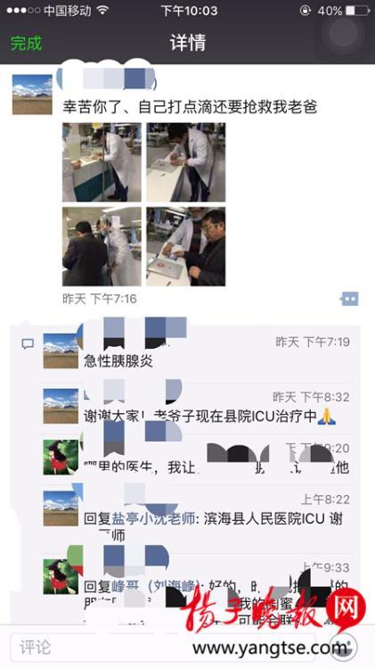 記者聯(lián)系上微信好友劉海峰,他告訴記者,昨天晚7點(diǎn)左右,他老爸重因病去濱??h人民醫(yī)院搶救,進(jìn)入重癥病房后,跟著一名護(hù)士去喊醫(yī)生,看到一名男醫(yī)生坐在辦公室的看病歷?!拔液?jiǎn)單說了一下爸爸的病情,他立刻推著掛著點(diǎn)滴的架子跑了出來?!眻D片來源:揚(yáng)子晚報(bào)網(wǎng)