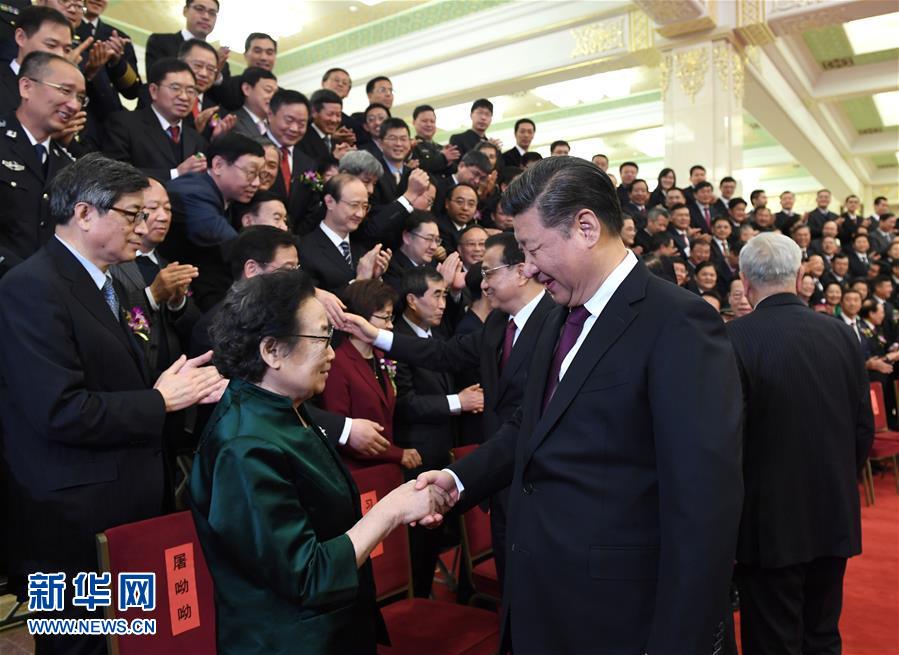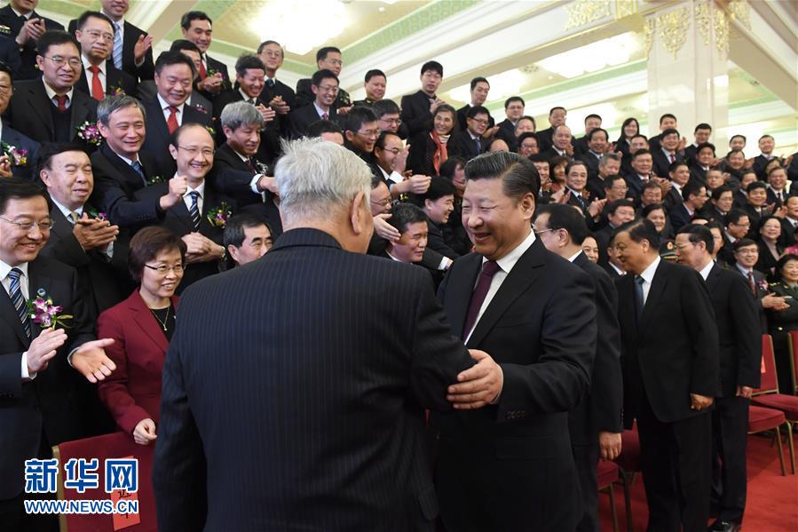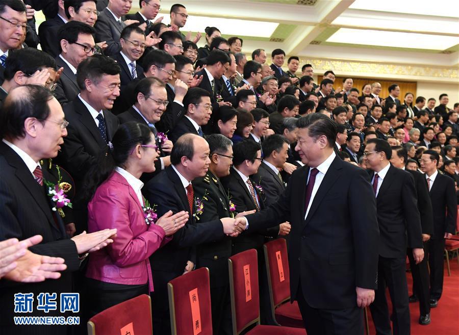 1月9日,2016年度國家科學技術獎勵大會在北京人民大會堂隆重舉行。黨和國家領導人習近平、李克強、劉云山、張高麗等出席大會并為獲獎代表頒發(fā)獎勵證書。會前,習近平等黨和國家領導人會見獲獎代表。新華社記者 李學仁 攝