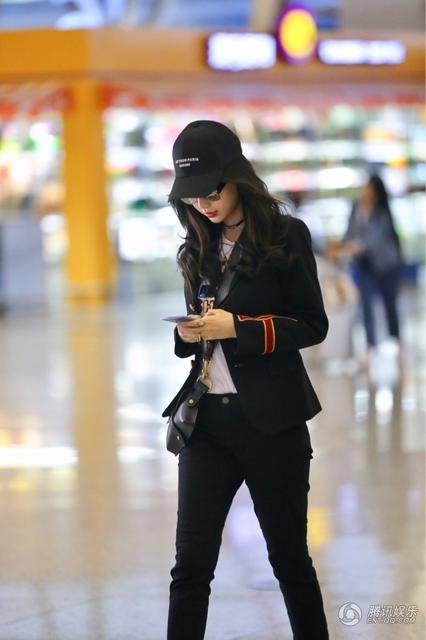 騰訊娛樂訊 23日下午,Angelababy現(xiàn)身上海機(jī)場,一身紅黑拼色西裝讓Baby看起來十分帥氣有型。