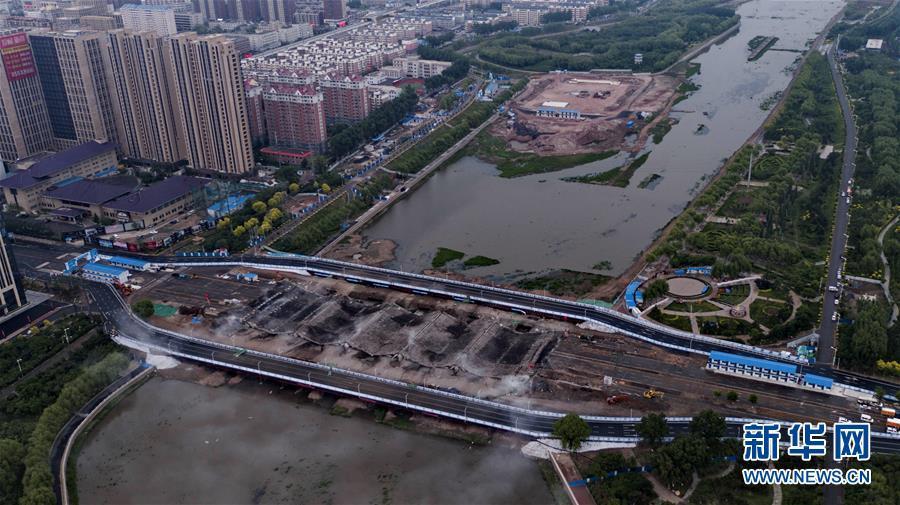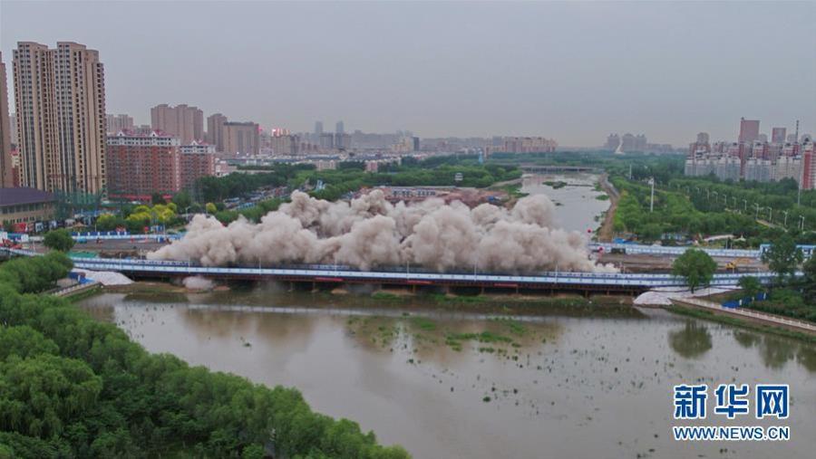 5月31日,長春自由大橋在進(jìn)行橋面爆破。新華社記者 張楠 攝