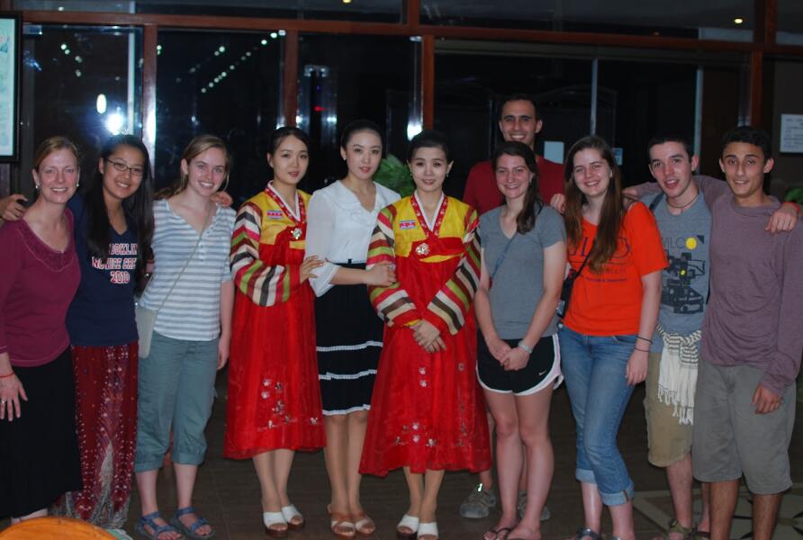 朝鮮餐廳的服務(wù)員與國外顧客合影。