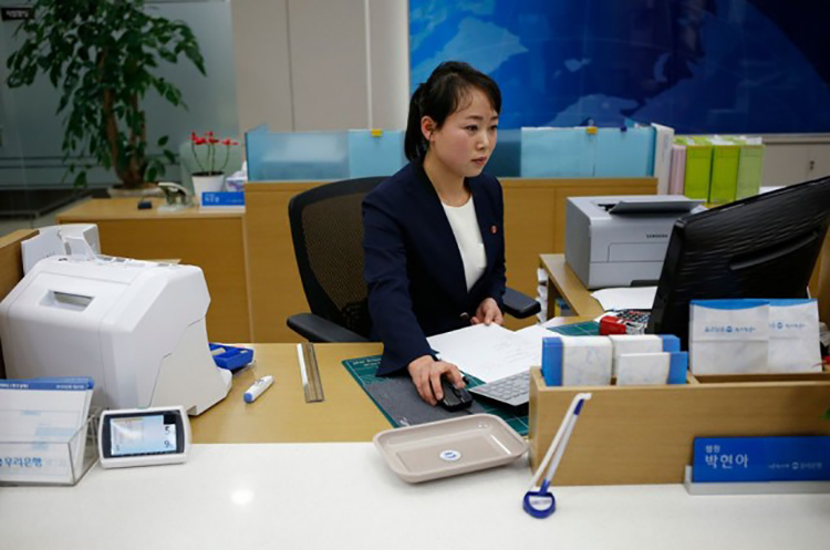 在開城工業(yè)園區(qū)內(nèi)銀行工作的朝鮮員工。