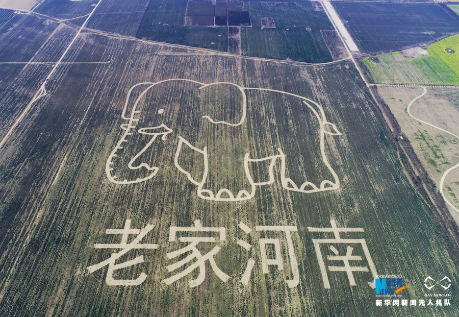 近日,《老家河南》創(chuàng)意圖案亮相河南省溫縣境內(nèi)的黃河濕地。據(jù)介紹,這幅圖案占地一公頃,主要通過圖案設計、定點測繪、錯季間作、田間管理等環(huán)節(jié)制作而成,《老家河南》由大象圖案和“老家河南”字樣組成。新華網(wǎng)發(fā) 徐宏星攝