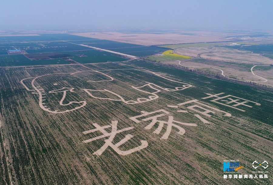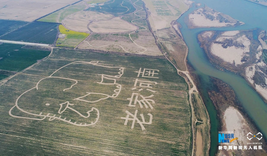 3月25日在黃河濕地豐樂大河牧業(yè)種植區(qū)航拍的巨幅農(nóng)業(yè)創(chuàng)意圖《老家河南》。