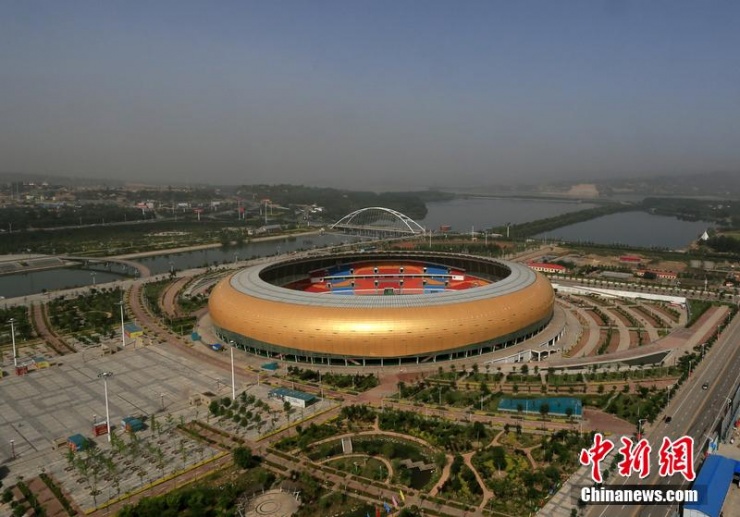 河南省三門峽市,站在三門峽文化體育中心對面的高樓向下看,體育場如同一個巨大的“聚寶盆”,成為當?shù)匾坏漓n麗風景。