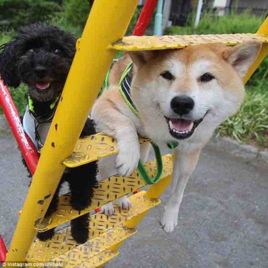 Uni-Chan今年6歲,現(xiàn)與主人居住在東京。據(jù)它的主人稱,Uni-Chan每天都會去戶外散步兩三個小時,它尤其喜歡高的地方以及各種游樂場設(shè)施。除了蕩秋千,這只小柴犬還喜歡玩蹺蹺板、爬繩子,或是帶著草帽與它的好朋友——一只黑色的貴賓犬嬉戲。