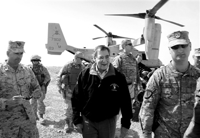 14日,正在阿富汗訪問的美國國防部長帕內(nèi)塔乘軍機抵達一處軍事基地