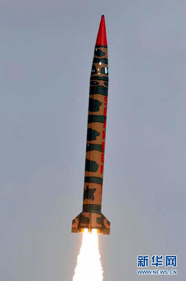 這張由巴基斯坦國(guó)際公共關(guān)系服務(wù)部門(ISPR)4月25日發(fā)布的照片顯示了成功發(fā)射的可攜帶核彈頭的中程彈道導(dǎo)彈。巴基斯坦軍方25日發(fā)表聲明稱,巴基斯坦當(dāng)天成功發(fā)射了可攜帶核彈頭的中程彈道導(dǎo)彈,并成功擊中海上預(yù)定目標(biāo)。