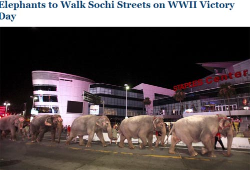 據(jù)俄新社報道,俄羅斯國家馬戲公司日前透露,為了慶祝衛(wèi)國戰(zhàn)爭勝利67周年,來自俄羅斯一著名馬戲團(tuán)的象群將于5月6日在索契的大街上巡游。