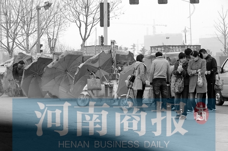 為遮擋大風,路邊小吃攤的大傘都迎風放著。河南商報記者 鄧萬里/攝