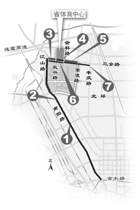 18:00至20:00,南陽路(金水路至北環(huán)立交段)、江山路(北環(huán)立交至三全路段),只允許機(jī)動(dòng)車由南向北行駛,禁止一切機(jī)動(dòng)車(公交車除外)由北向南行駛。