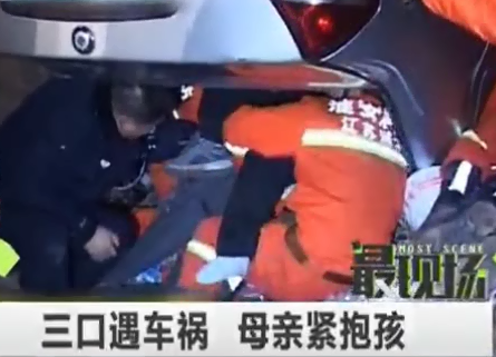 三口遇車(chē)禍 母親緊抱孩