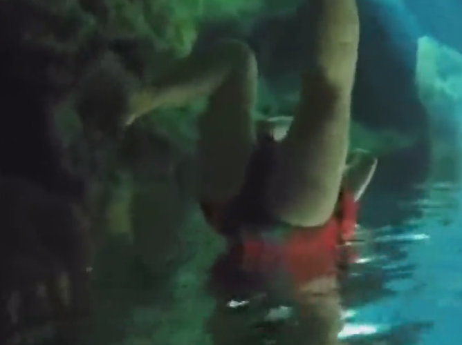 女子河上上演“輕功水上漂”