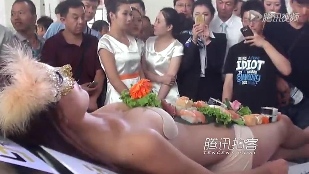 沈陽車展現(xiàn)“女體盛壽司宴”現(xiàn)場試吃