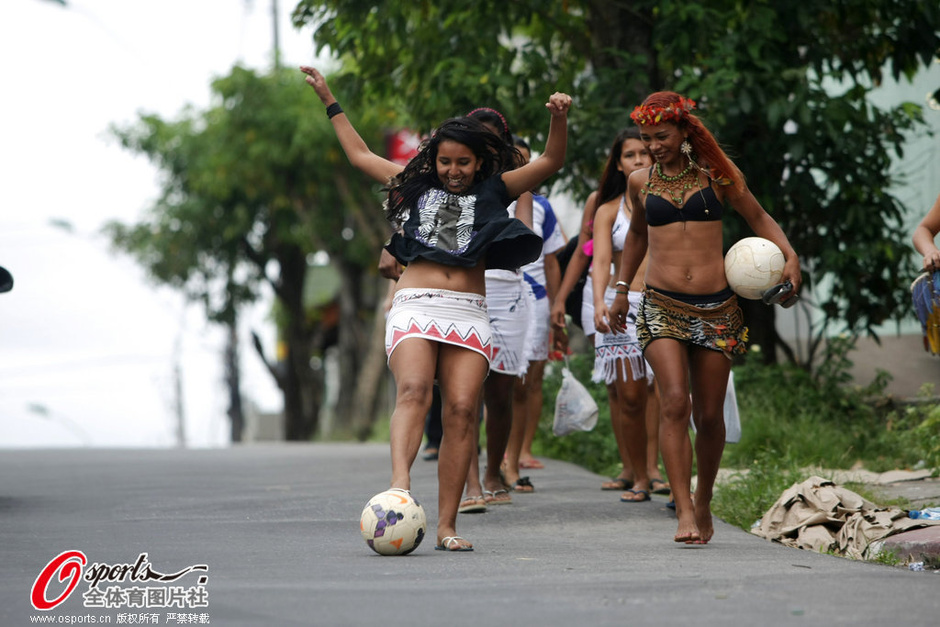 2014年6月5日,熱帶雨林為世界杯而瘋狂,亞馬遜女性土著盡享足球快樂。