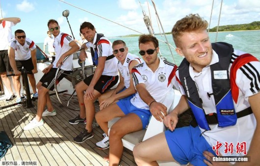 2014年6月10日,巴西圣安德烈,2014巴西世界杯前瞻,德國隊賽前放松乘船出游。