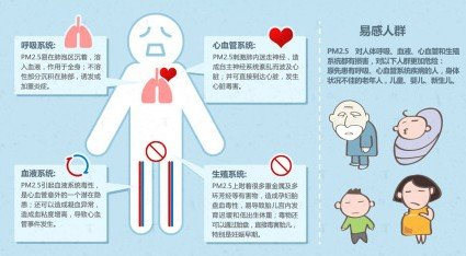 霧霾天由于紫外線照射不足,人體內(nèi)維生素D生成不足,易產(chǎn)生精神懶散、情緒低落等現(xiàn)象,還可能導(dǎo)致缺鈣。美國一項(xiàng)結(jié)果顯示,生活在空氣污染較為嚴(yán)重的環(huán)境下的孕媽,他們娩出的寶寶出生體重降低9%,頭圍數(shù)減少2%,對比空氣相對較好的孕媽們娩出的寶寶則沒有明顯的變化。研究表明,空氣污染對胎兒的低出生體重和小頭圍有關(guān),環(huán)境污染對胎兒生長構(gòu)成威脅。綠色和平組織發(fā)布的有關(guān)PM2.5對人體危害的警告:PM2.5上附著很多重金屬及多環(huán)芳烴等有害物,造成孕婦胎盤有毒性,易導(dǎo)致胎兒宮內(nèi)發(fā)育遲緩和低出生體重;毒物還可以通過胎盤,直接毒害胎兒,特別是妊娠早期。