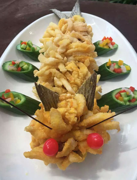 4、用六成熱油溫炸制后再用七成熱油溫重油。