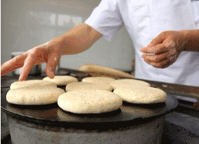 別看這燒餅配料簡單,要想做的好吃全憑手上功夫,在滾燙的鏊子上烙至兩面微黃,再放入爐中烤制十幾分鐘,要想做出的燒餅蓋焦內軟,不僅要選用傳統(tǒng)的無煙炭火,還要精準地把控火候。