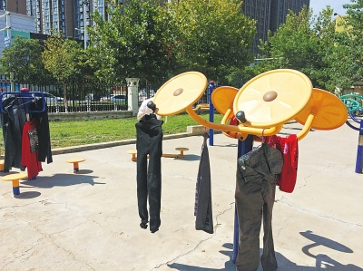據小區(qū)物業(yè)部相關負責人表示,小區(qū)之前也存在這種情況,主要是部分保安和保潔人員住的地方比較潮濕,又沒有地方晾衣服,所以他們就晾在了健身器材上。該負責人說,物業(yè)曾提醒大家不要把衣服晾曬到器材上,但沒有多大效果,“總不能派人看守吧,這也不太現實。”同樣的事情也發(fā)生在管城區(qū)商都幸福家園,記者探訪時,一名女士拍打完晾曬在健身器材上的被褥,卷起來準備拿回家。