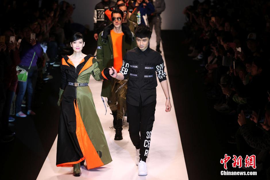 4月13日晚,變身設計師的古巨基個人第一場時裝發(fā)布會在上海時裝周舉行。為支持好友首秀,女神周慧敏特意飛到上海,親自登臺走秀,驚艷全場。圖為古巨基與周慧敏共同登臺。 張亨偉 攝